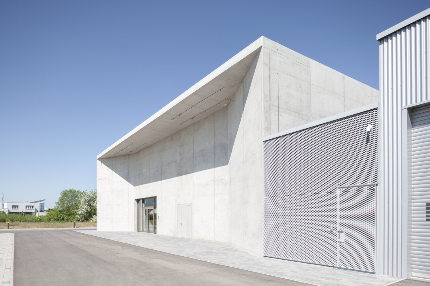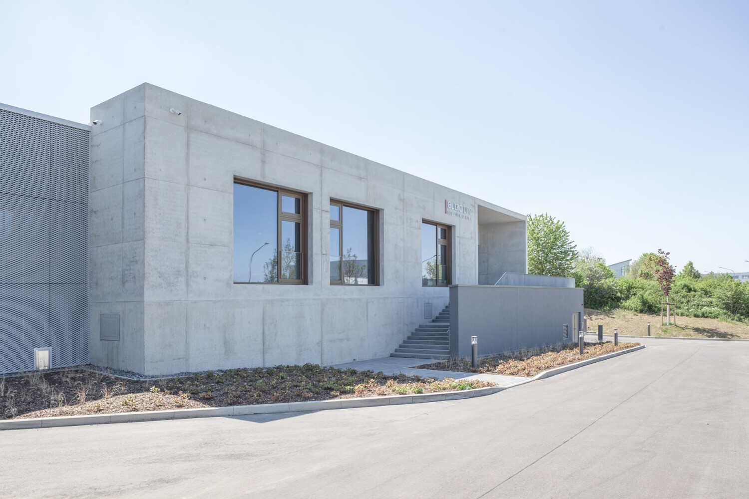 In Heilbronn ist ein beeindruckendes Demo- und Konferenzcenter entstanden – mit bis zu 8,60 Meter hohen Sichtbetonportalen ein echter Blickfang! Der prägnante Kopfbau erweitert ein bestehendes Lager- und Verwaltungsgebäude und setzt starke architektonische Akzente.