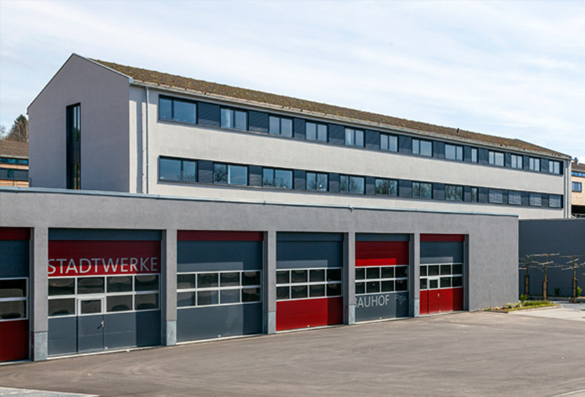 Direkt am äußeren Stadtring, neben der Bundesstraße B 27 errichtet die Stadt Neckarsulm die neue Herberge des städtischen Bauhofes und der Stadtwerke. Der gesamte Komplex besteht aus einem großen Verwaltungsbau mit unterirdischer Fahrzeughalle sowie 6 Hallengebäuden und großzügigen Freilagerflächen.
