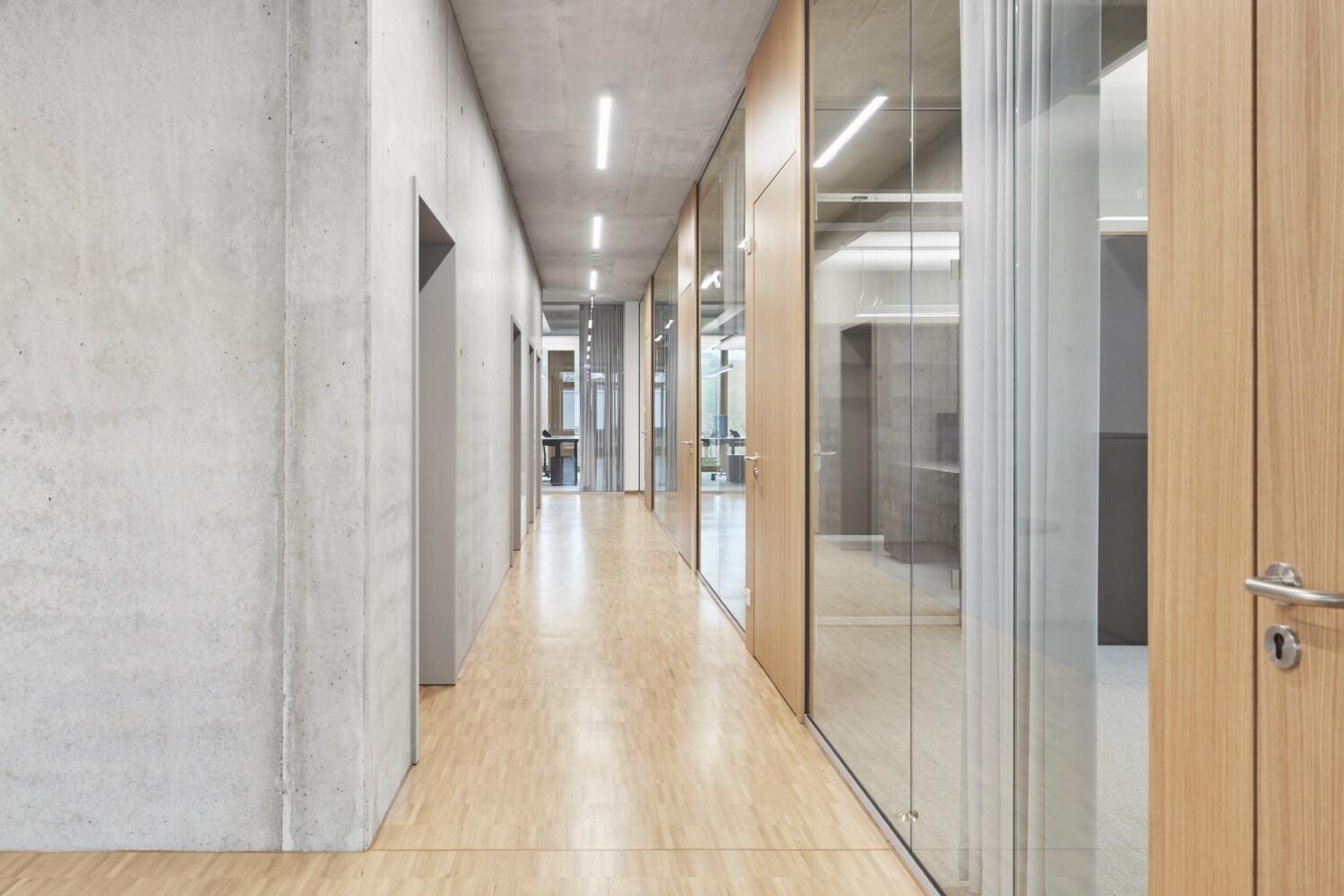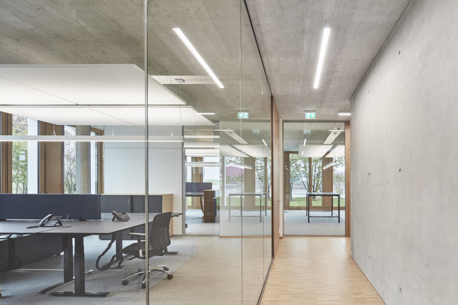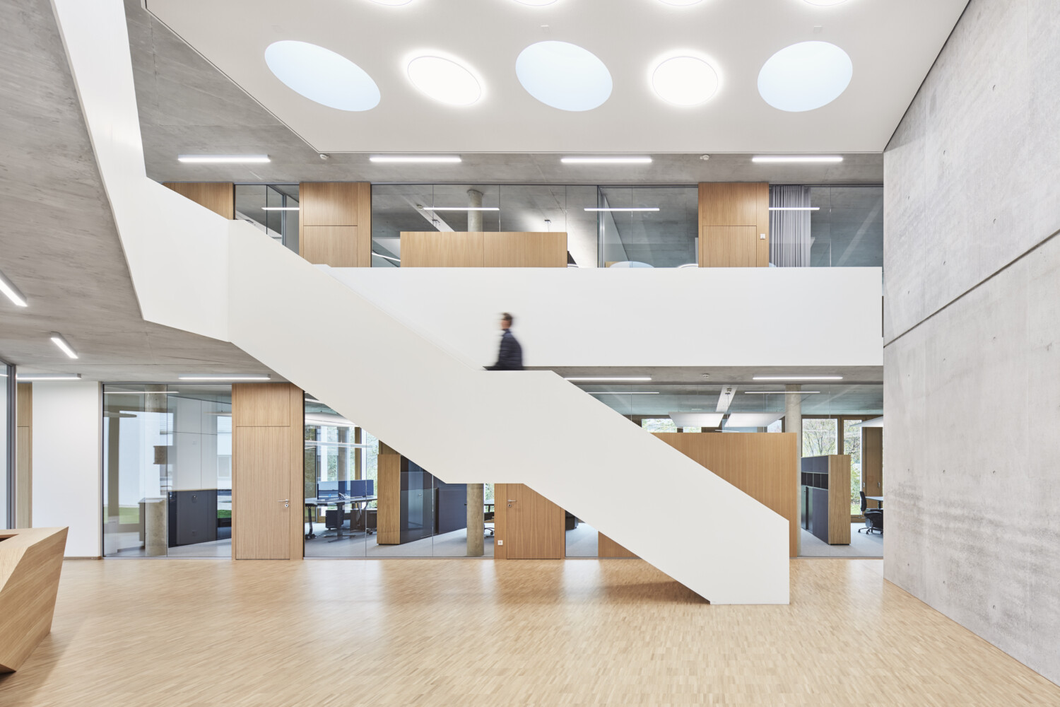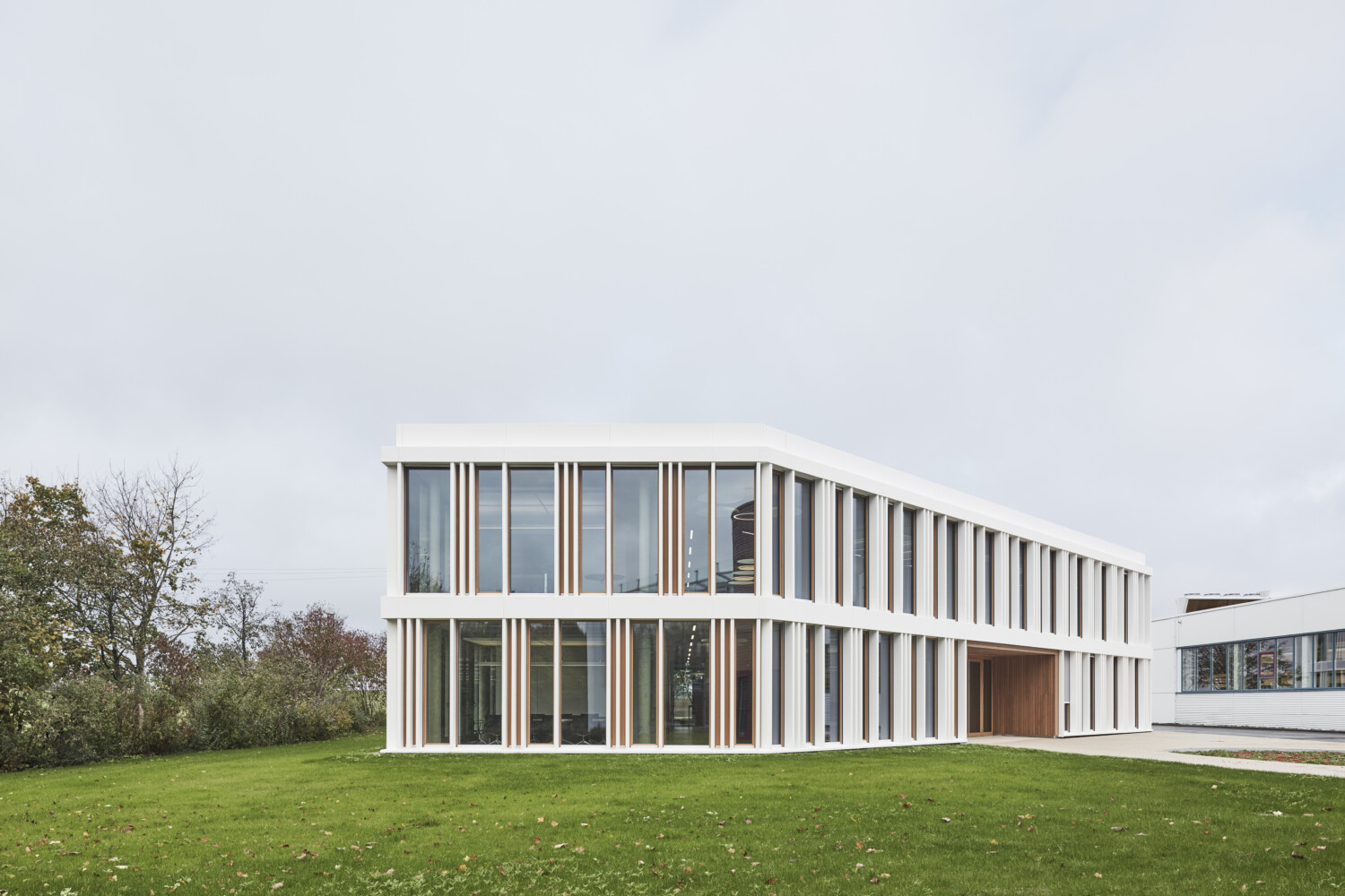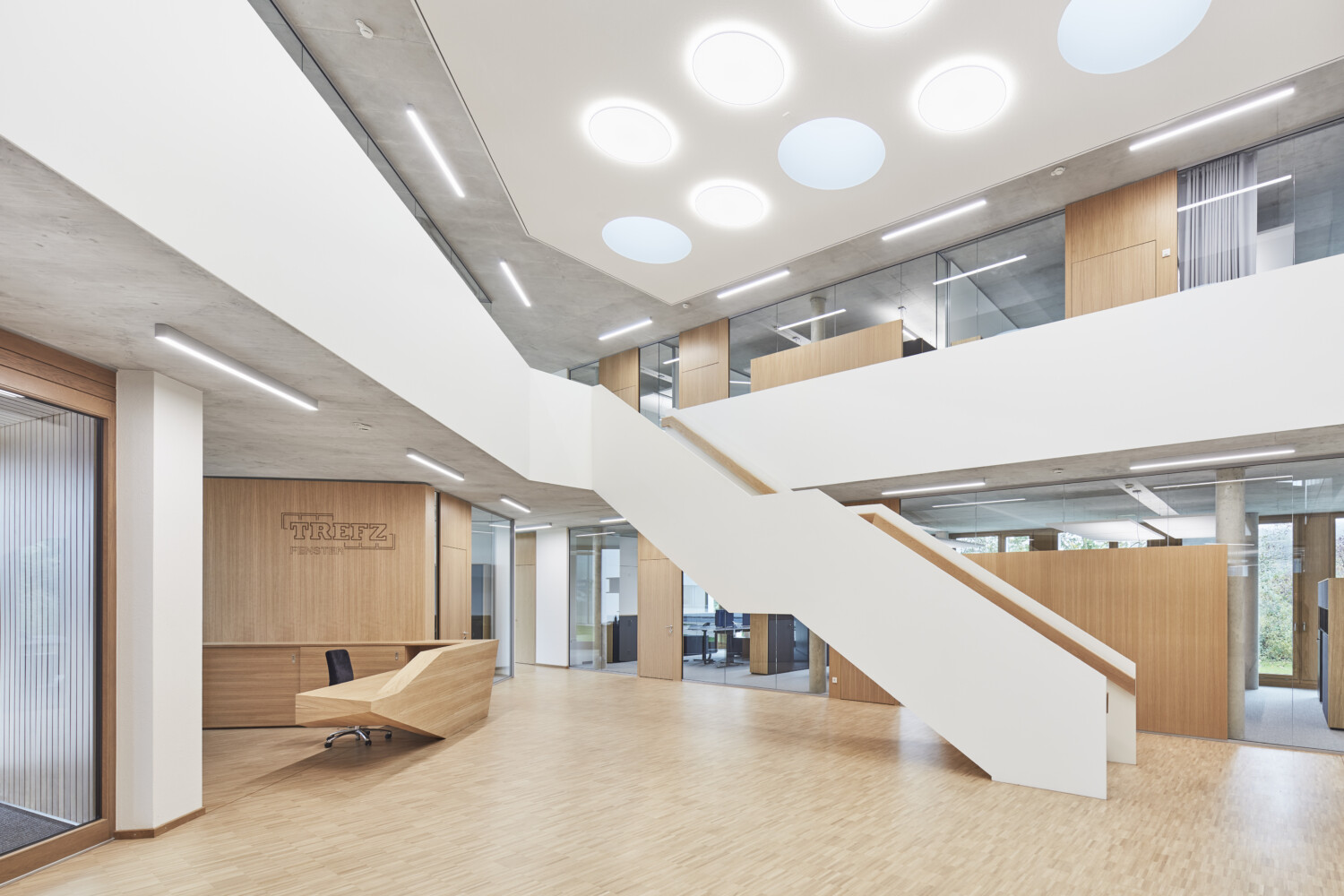 Das neue Bürogebäude der Fassadenfirma Trefz ist ein architektonisches Statement für Qualität, Präzision und Begegnung. Mit seiner markanten, polygonalen Form und der lichtdurchfluteten zweigeschossigen Halle setzt es die Tradition hochwertiger Einzelgebäude am firmeneigenen Campus fort. Es schafft großzügige Freiräume und kurze Wege, die Austausch fördern und den Arbeitsalltag erleichtern. Die durchdachte Fassade aus raumhohen Verglasungen, kombiniert mit tiefen Ständern, sorgt für natürliche Verschattung und beeindruckende Ausblicke in den Schwäbisch-Fränkischen Wald. Mit hochwertigen Materialien wie Beton, Holz und Stahl spiegelt das Gebäude die Werte des Unternehmens wider – funktional, ästhetisch und zukunftsorientiert.