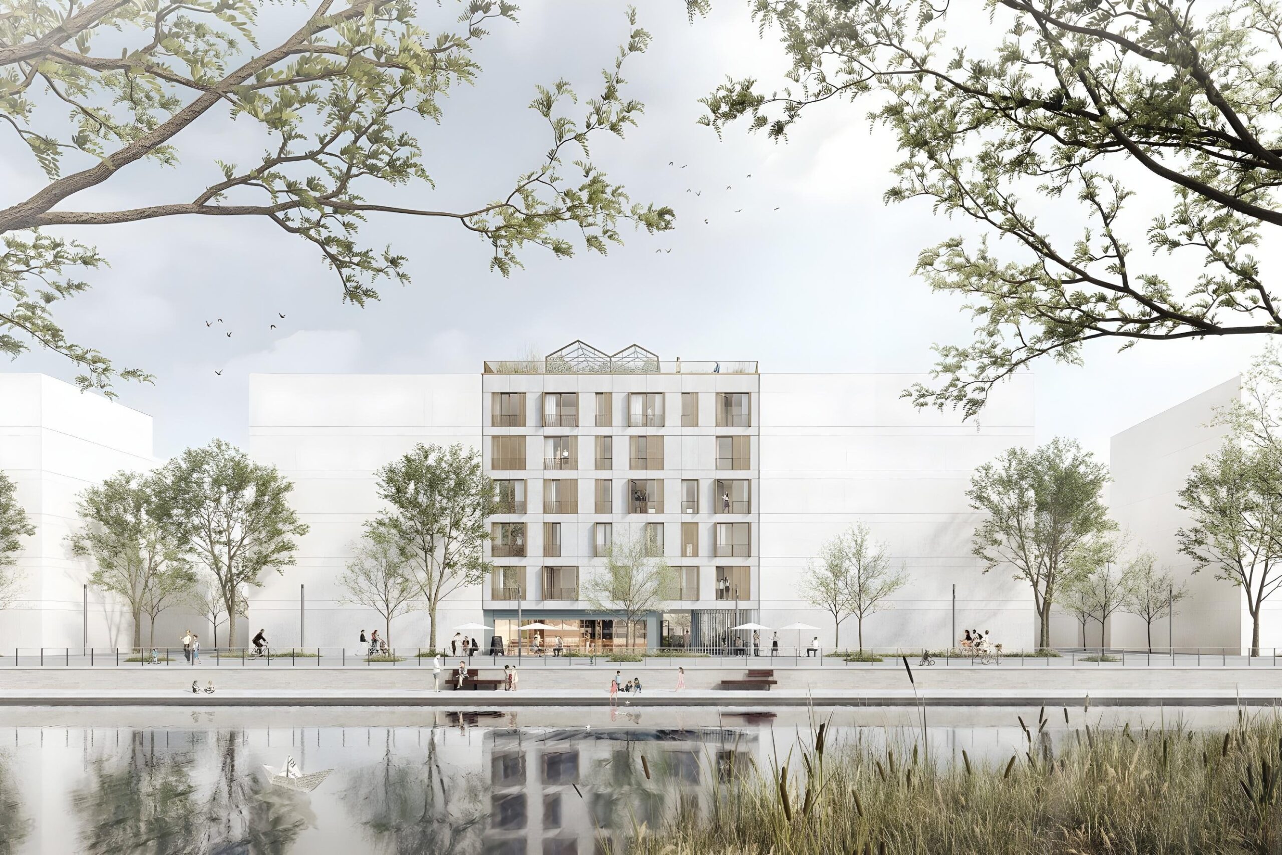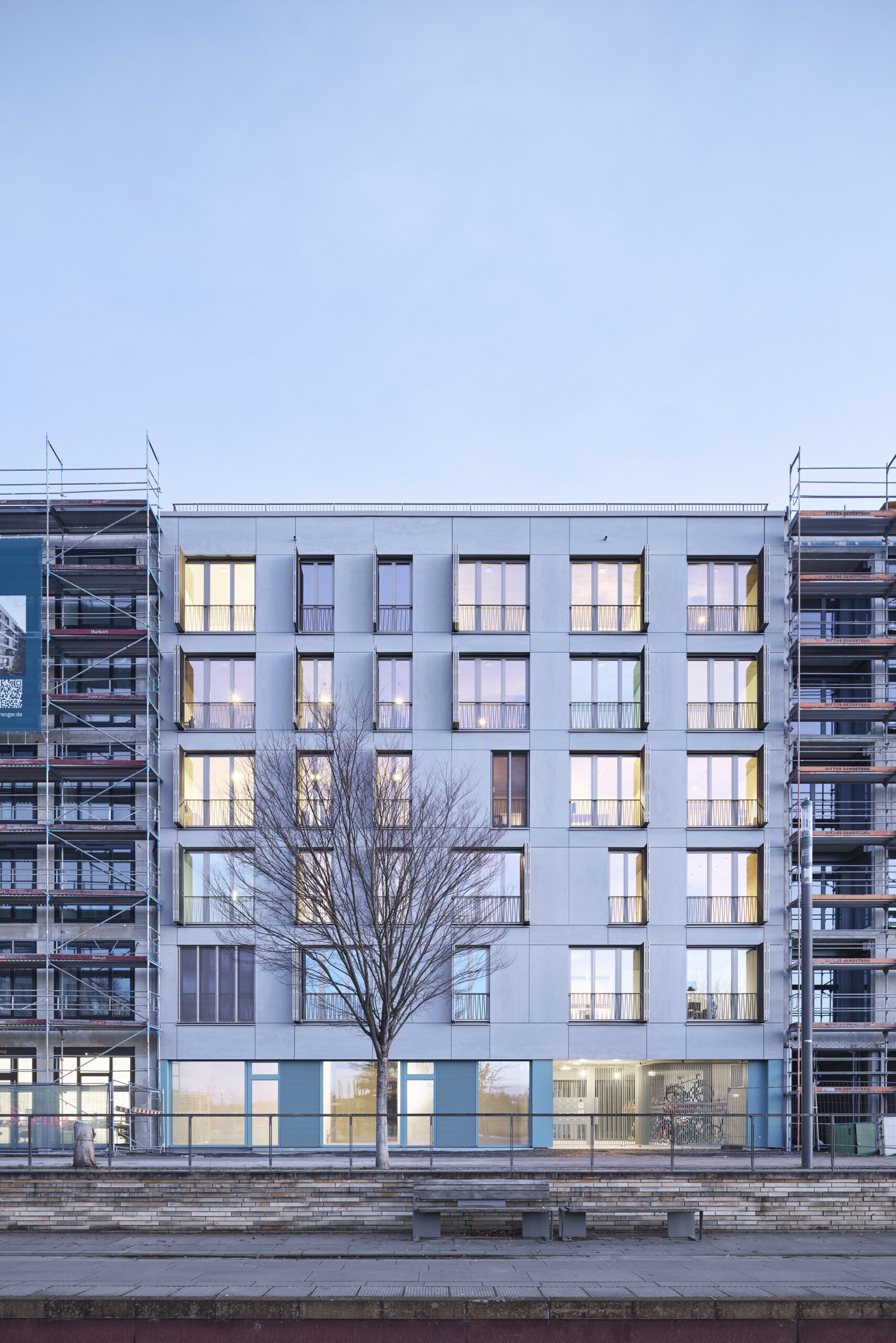 Im Innenstadtbereich von Heilbronn wird nun mit dem zweiten Bauabschnitt die Entwicklung des Neckarbogens grundsätzlich fortgesetzt. Auf dem Baufeld K2 entsteht im Zuge der Gesamtquartiersbebauung ein hochwertiges Wohn- und Geschäftsgebäude, dessen Entwurf von StudioSoA sich durch eine klare Architektursprache auszeichnet. Der grundlegende Entwurfsgedanke die verfügbaren Mittel wie Raum und Ressourcen effizient und nachhaltig zu nutzen wird konsequent von der räumlichen Ausnutzung des Grundstückes bis hin zur inneren Erschließung der Konstruktion und Funktion des Gebäudes umgesetzt. Das sechsgeschossige Gebäude wird in Holzhybridbauweise erstellt, die variantenreichen Grundrisse treffen die Bedürfnisse vom Familien- bis zum Singlehaushalt und bieten Raum zum Wohnen und Arbeiten. Das Erdgeschoss öffnet sich mit der Ladeneinheit hin zum Floßhafen und bietet den Bewohnern eine wettergeschützte flexibel nutzbare Gemeinschaftsfläche mit Werkstatt.